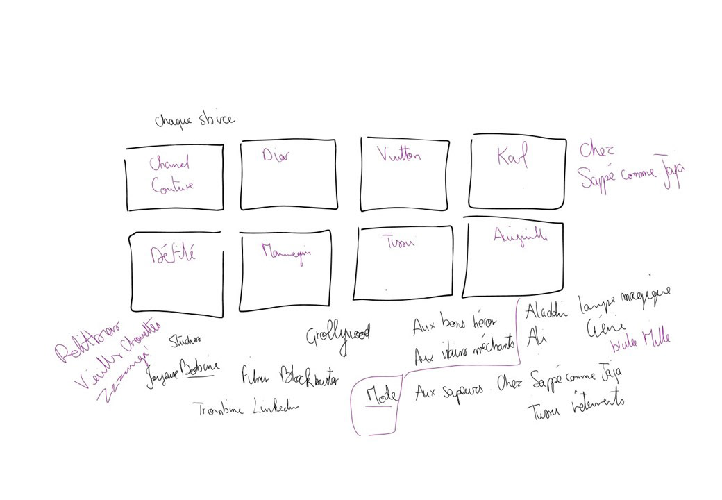 Exemple of the Crazy-8 method we used to find the companies names in our stories.