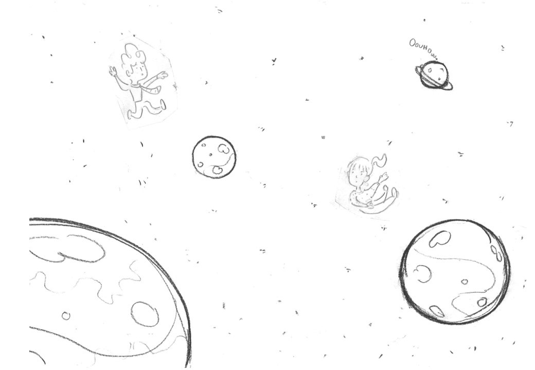 The first story : Zzzinga! would talk about hybrid workspaces : how can people collaborate efficently when they're scattered all over the galaxy?